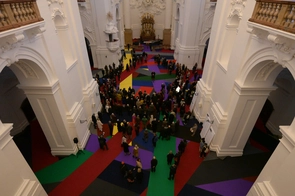 2004 wurde der Kardinal König Kunstfonds als eine Initiative zur Begegnung zwischen Kunst und Kirche von der Erzdiözese Salzburg gegründet. Initiator war der Theologe und Kunsthistoriker Prälat Johannes Neuhardt. 2005 wurde Hans Schabus als erstem Preisträger der Kardinal König Kunstpreis für seine Venedig-Biennale-Arbeit „Das letzte Land" verliehen. Mit seiner Arbeit „Innere Landschaft" legt Hans Schabus mit vielfarbigen, gebrauchten Teppichbahnen von verschiedenen Salzburger Institutionen der Kollegienkirche mit ihrer weißen Raumschale ein neues Fundament. Während die Struktur der Architektur über das schmale Haupthaus nach vorne und über die 58 Meter hohe Kuppel nach oben strebt, erdet die Intervention den Ort und lenkt den Blick zum Boden. Mit ihrer Kreuz-und-quer-Verlegung, ihrem weichen Material und ihrem provisorischen Dasein kontrastieren die Teppiche die klare und repräsentative Architektur und laden als ungerichtetes Wegenetz die Besucher:innen ein, sich selbst im Raum zu verorten.